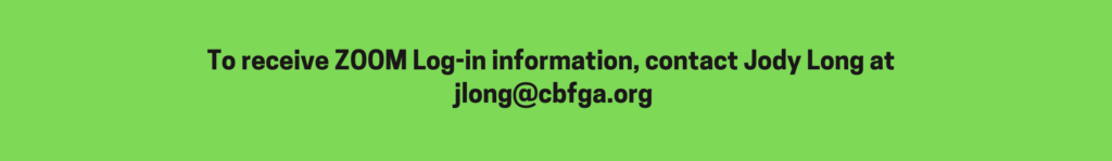 To receive ZOOM log-in information contact Jody Long at jlong@cbfga.org.